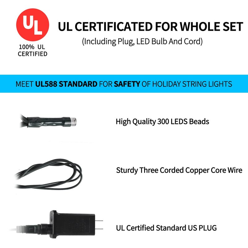 - [End To End Connectable]: Each fairy light comes with an end-to-end plug, which makes you can connect max 3 sets together. Each one length is 108 feet with 300 LEDS, the max expandable length is 324 feet with 900 LEDS.