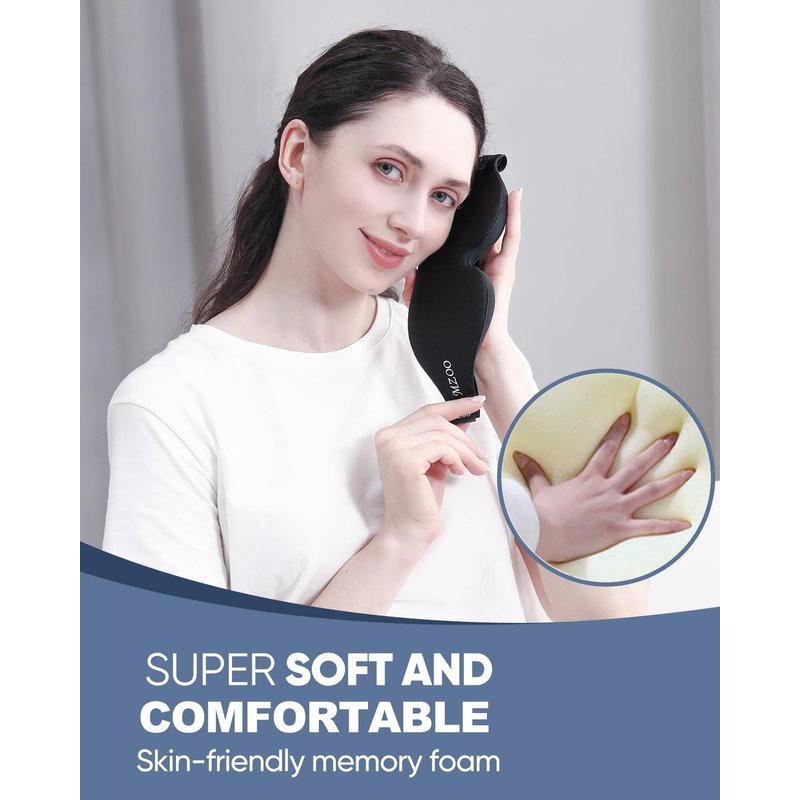 MZOO Sleep Eye Mask for Men Women, Zero Eye Pressure 3D Sleeping Mask, 100% Light Blocking Patented Design Night Blindfold, Soft Eye Shade Cover for Travel, Black