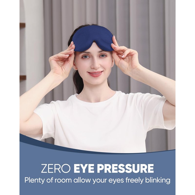 MZOO Sleep Eye Mask for Men Women, Zero Eye Pressure 3D Sleeping Mask, 100% Light Blocking Patented Design Night Blindfold, Soft Eye Shade Cover for Travel, Blue
