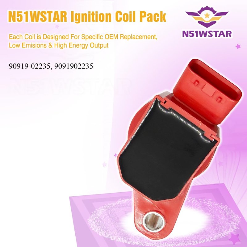 N51WSTAR Performance Ignition Coil Packs Set Of 4 Compatible With TOYOTA Corona Nadia Vista Vista Ardeo 1996 1997 1998 1999 2000 2001 2002 2003 Replacement For 90919-02235 9091902235