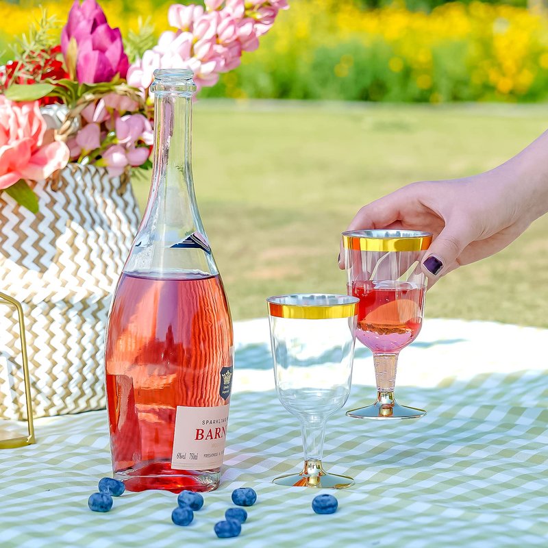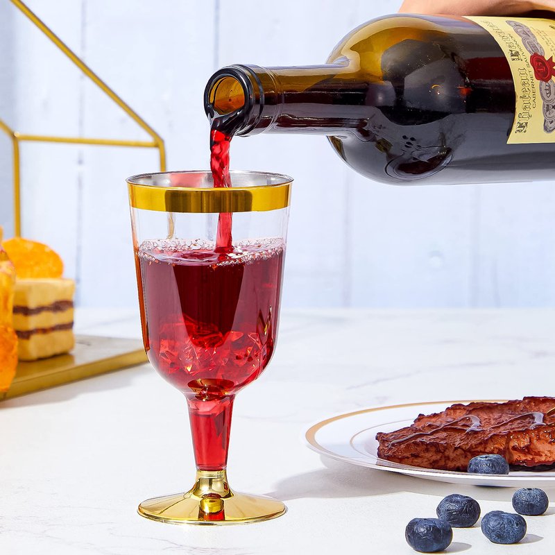 - PERFECT DESIGN: N9R plastic wine glass has a beautiful shape design and topped with a sophisticated gold rim. The 6oz capacity allows the wine to blend with the air. Its smooth rim is gentle on your lips and it is not only suitable for red and white wine, but also for various beverages.