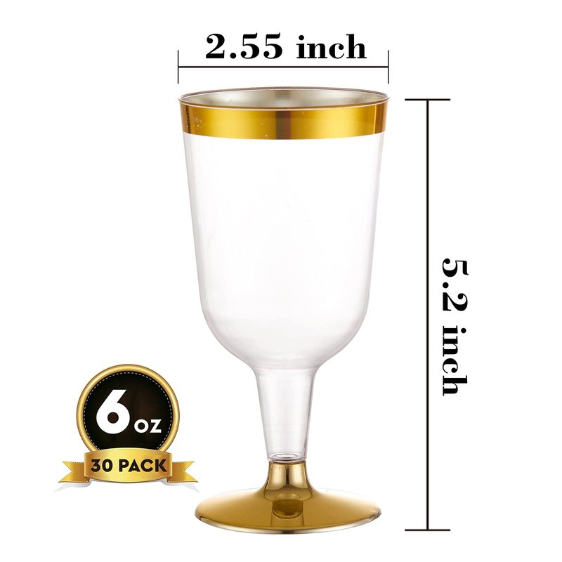 N9R 30 Pack Plastic Wine Glasses with Gold Rim, 6 Oz Plastic Wine glasses with Stem, Disposable Wine Cups Reusable Suitable for Party Weeding Birthday
