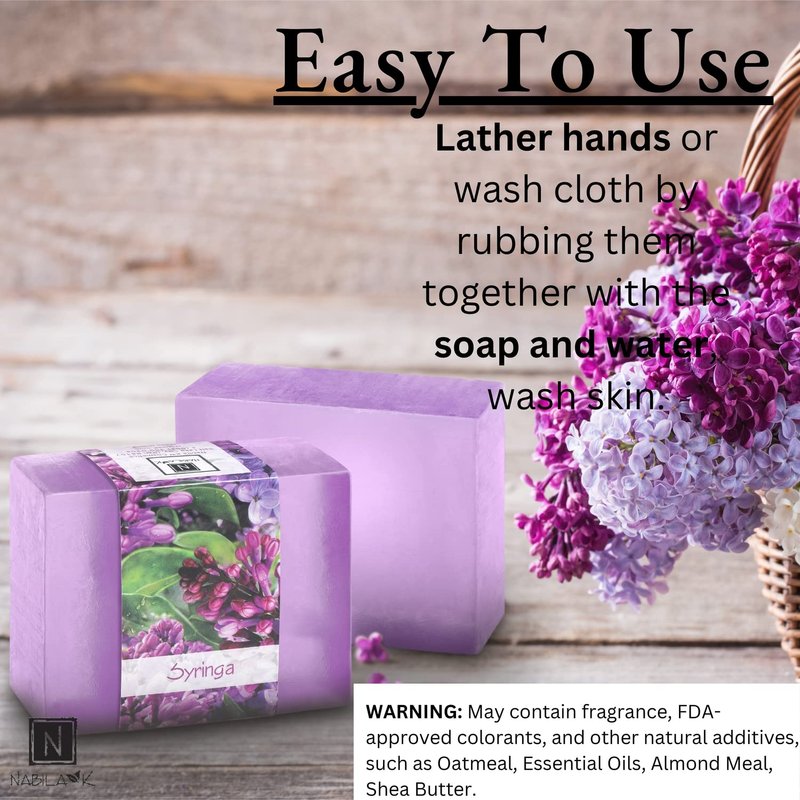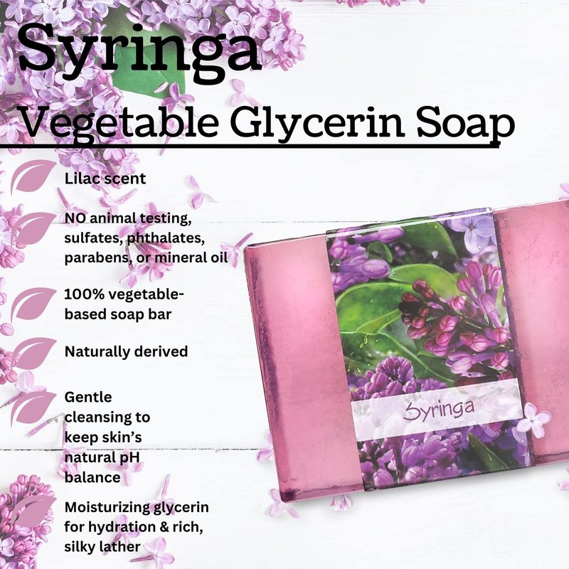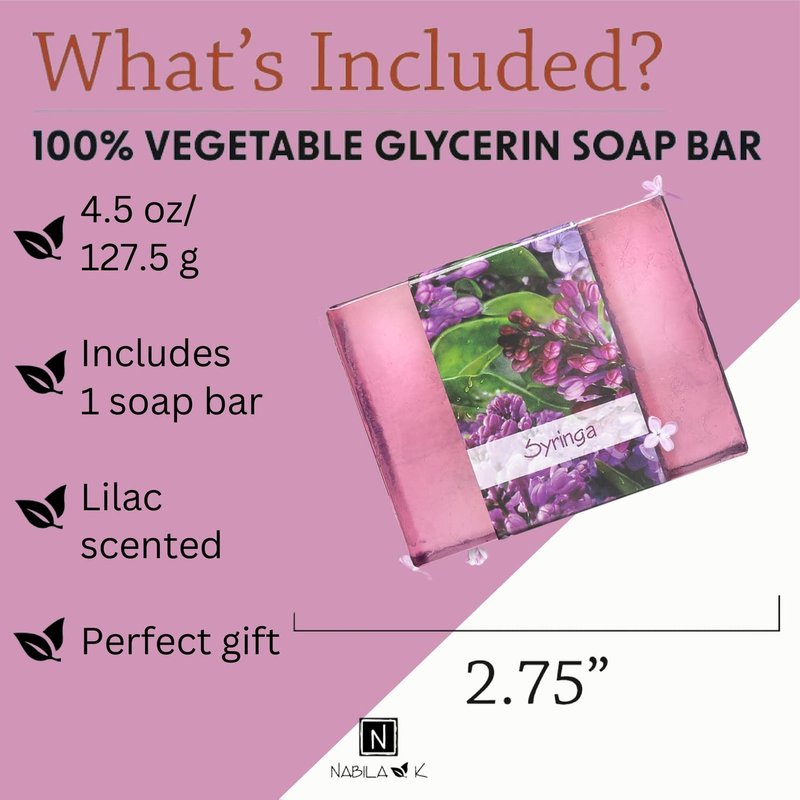 - Gently cleanse your hands and body without upsetting your skin’s pH balance with Nabila K’s Syringa glycerine soap bar. This unisex soap holds springtime scent that both men and women can find appealing and relaxing. Glycerin is the key ingredient to keeping your skin feeling hydrated with no cruelty.