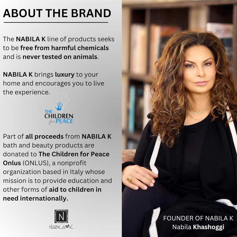 - Nabila K glycerin soaps come in a selection of lovely fragrances and colors designed to complement the associated line of luxury Bubble Baths and Shower Gels. Whether as a part of these toiletry sets, all on their own, or with different self care products, these glycerin soaps are a great addition to your bathroom.
