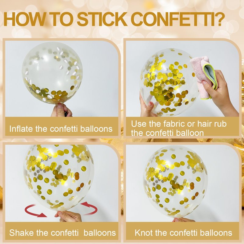 - Pay Attention: Do not overfill the confetti balloons to avoid explode or rub them against overheated and sharp objects to avoid sudden blow-up