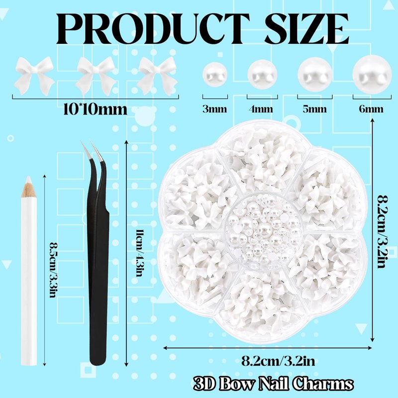 - Easy to use: our Bowknot 3D Cute Nail Charms come with tweezers, wax picker pencils, and a box. The box distinguishes bow and pearls, which can be picked out easily with tweezers, and the pearls are fixed with pencil, making your artistic creation more convenient