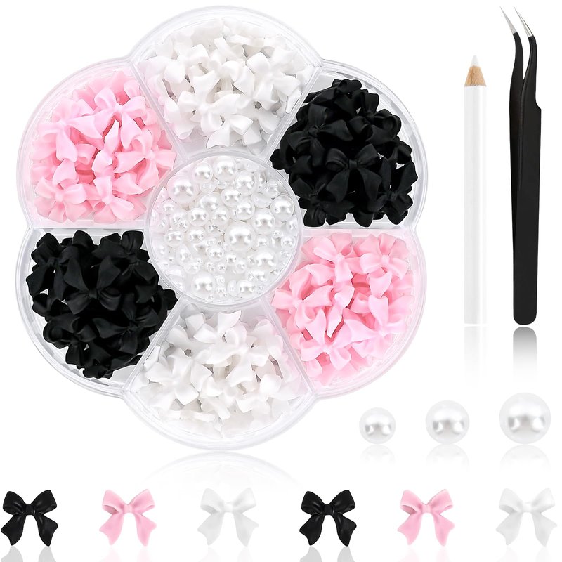 - Easy to use: our Bowknot 3D Cute Nail Charms come with tweezers, wax picker pencils, and a box. The box distinguishes bow and pearls, which can be picked out easily with tweezers, and the pearls are fixed with pencil, making your artistic creation more convenient
