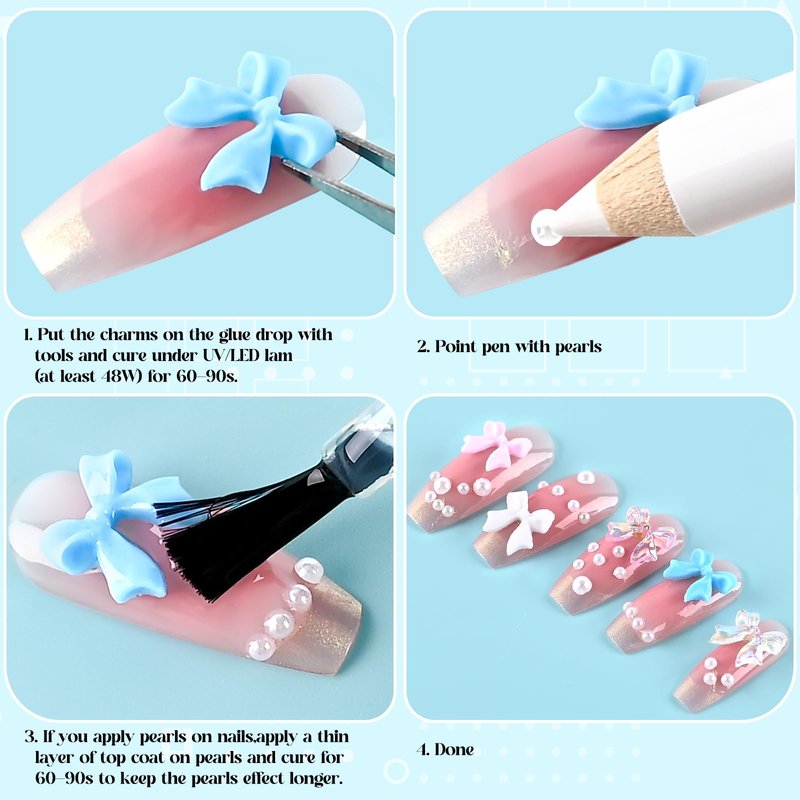 - Wide applications: our 3D Bow Cute Nail Charms and Flat Back Pearl can be glued to nails, shoes, phone cases, eye makeup, face, bags, wallets, clothes, headbands, etc., not only suitable for professional nail salons but also various handicraft projects, adding elegance and luster of pearls to your decoration