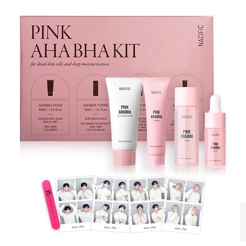 Nacific x Stray Kids Pink AHA BHA Kit ( Cleansing Foam, Toner, Serum, Cream ) Travel Size Skin Care Set with 4 Photocards (random) by KOSBEAUTY