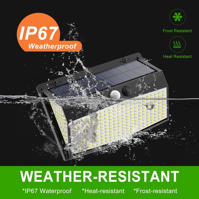- IP67 Waterproof Outdoor Security Solar Light: Made of high-strength ABS, it's specifically designed to withstand extreme weather conditions.