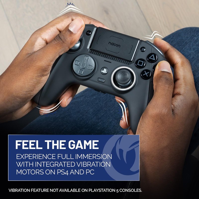 Boost your skills with the latest controller innovations from Nacon. Officially licensed for PlayStation, the Revolution 5 Pro delivers unmatched performance and reliability in a wireless game controller for PS5, PS4 and PC. Revolutionary features include magnetic Hall effect joysticks & triggers, adjustable trigger blockers, swappable D-pad designs, and Bluetooth audio. Discover the ultimate controller for PlayStation platforms.