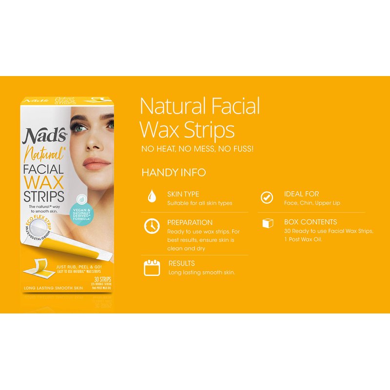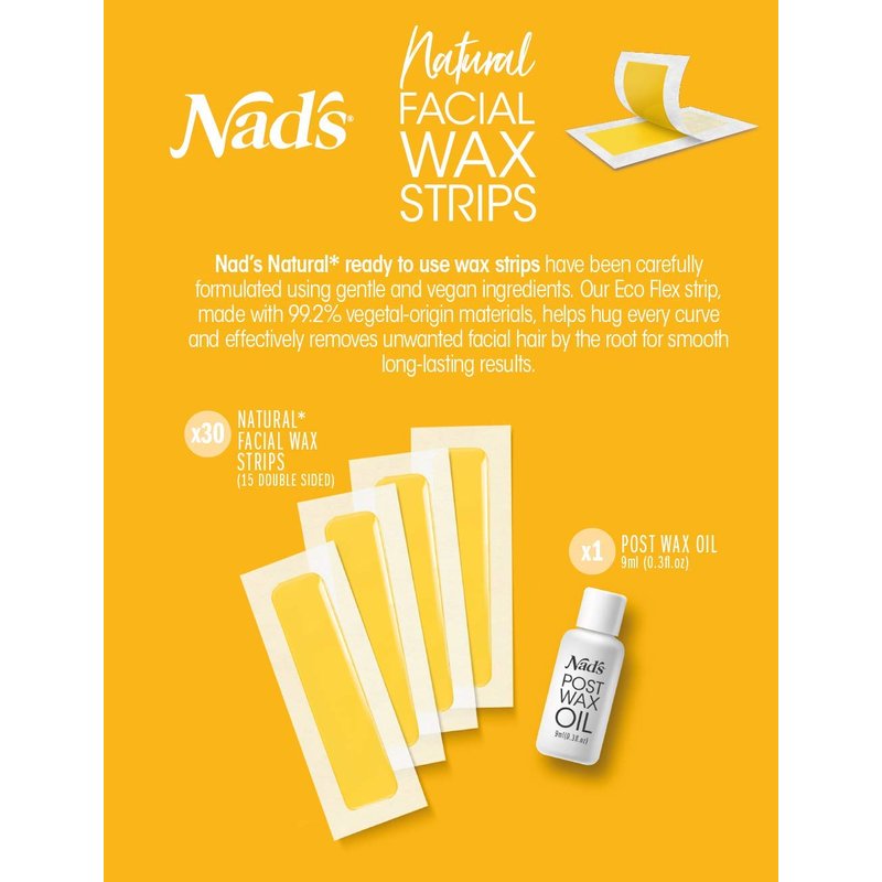Nad's Facial Wax Strips - Natural All Skin Types - Waxing Kit With 30 Face Wax Strips & Post Wax Oil, 1 Count