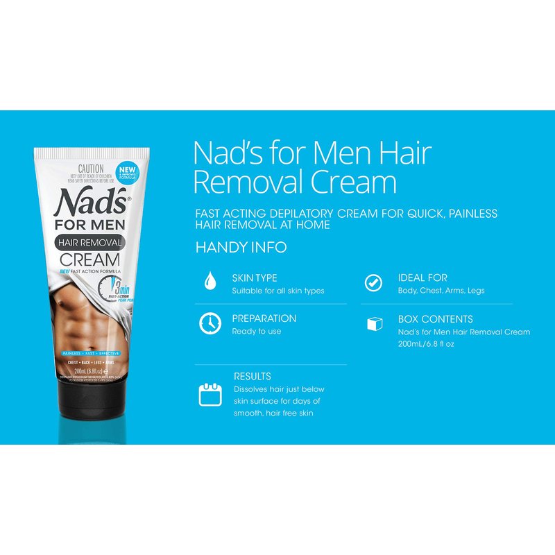 Nad's Soothing Men's Depilatory Cream for Unwanted Coarse Body Hair Removal, 6.8 Oz