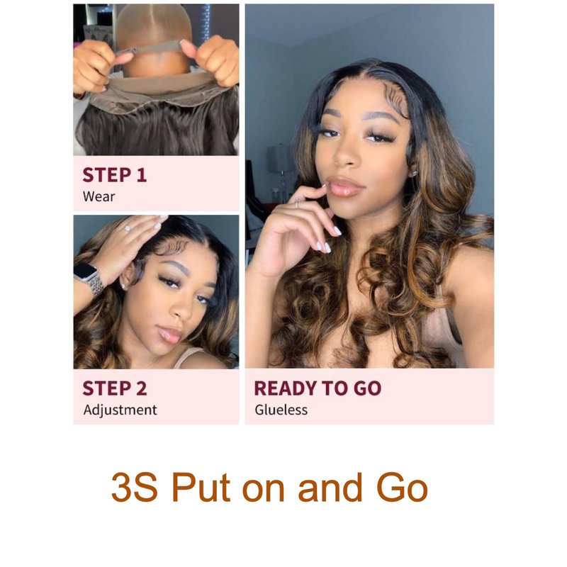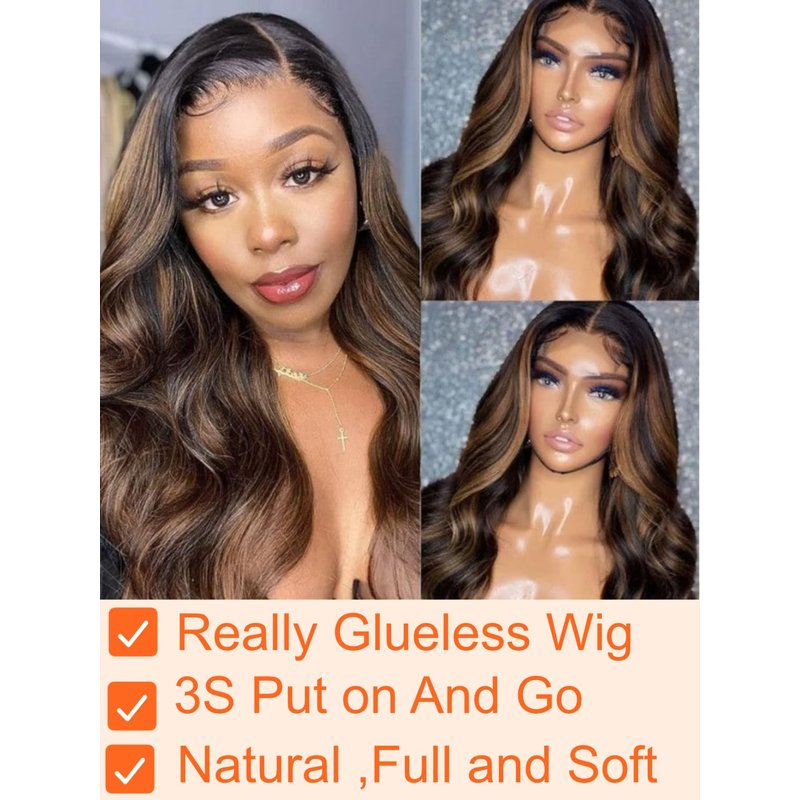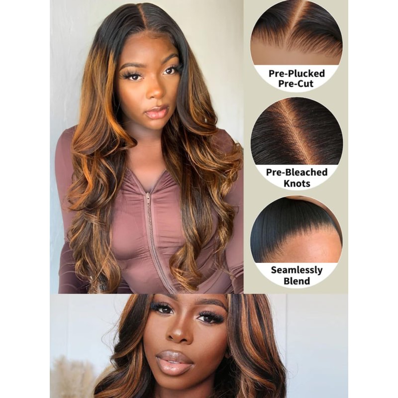 - Real Ready to Go Glueless Wigs:FB30 Balayage Brown Ombre Bye Bye Knot 7X5 Body Wave Invisible Knots Pre Plucked,Easy And Zero Skill Installed, Upgraded C Shaped Ear Tab,More Comfortable Wear.