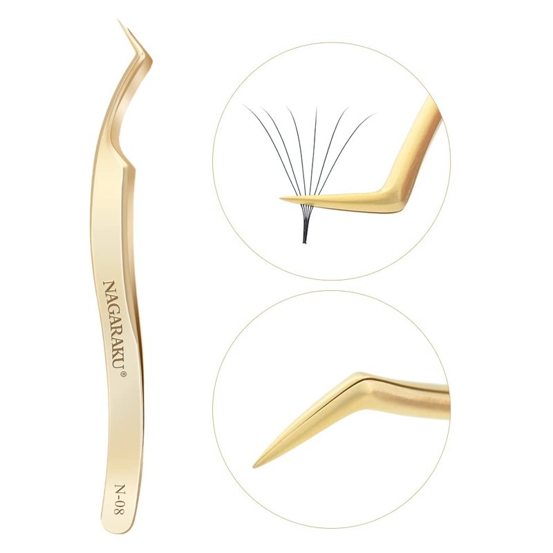 NAGARAKU Eyelash Extensions Tweezers for make Fans Curved Individual Mega Volume Lashes Precision Stainless Steel Professional (N-08)