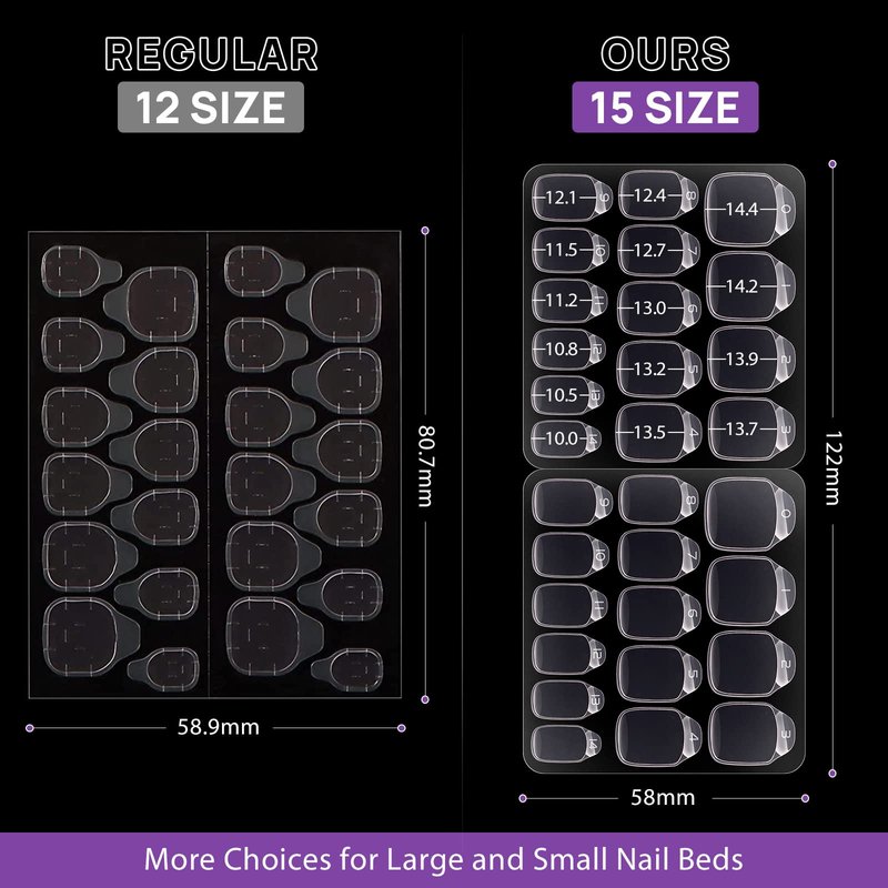 15 Sizes with Serial Numbers: 10 sheets nail adhesive tabs in 15 different sizes to fit most fingers. 300 PCS are numbered, so you can quickly distinguish them.