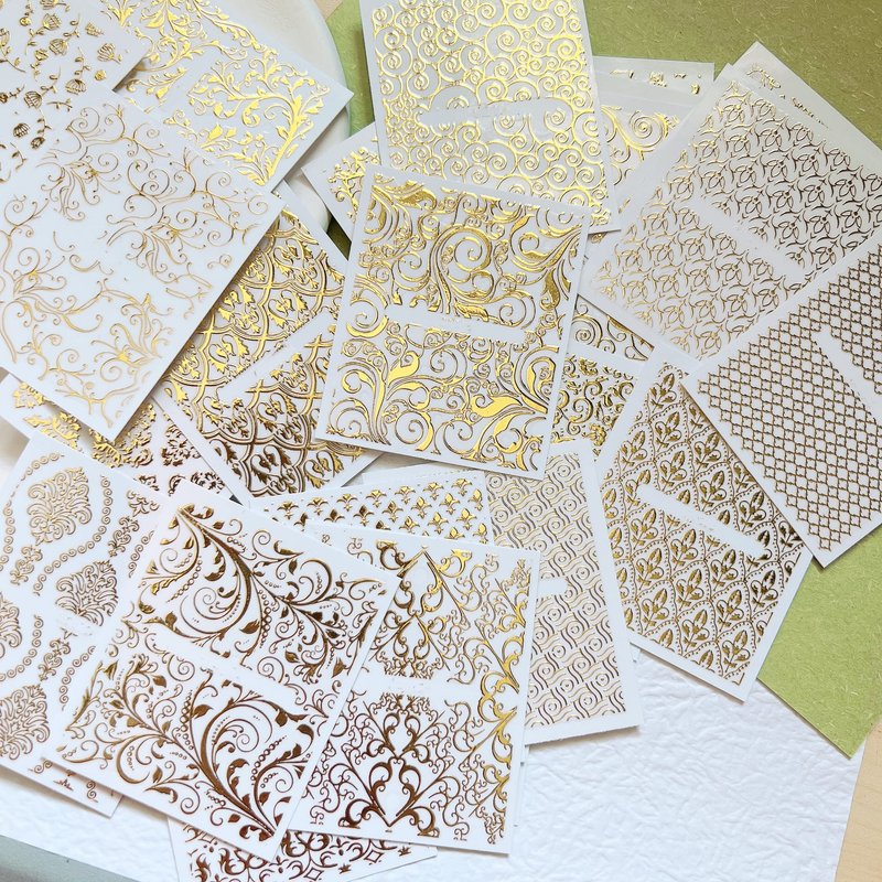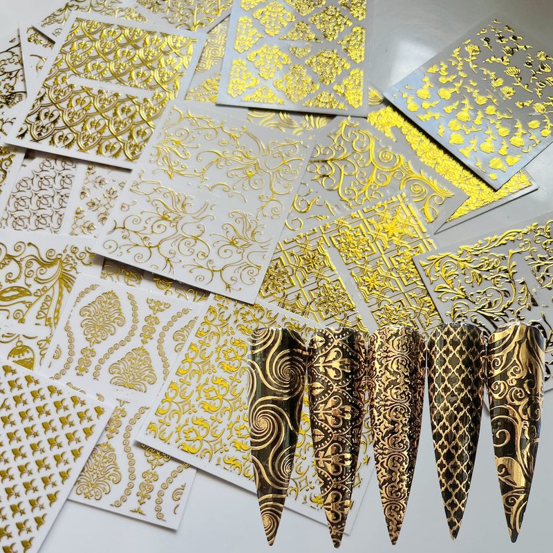 NAIL ANGEL 26Sheets Nail Art Adhesive Sticker Sheets Different Gold Color Luxury Shapes Sticker Nail Art Deco 10300