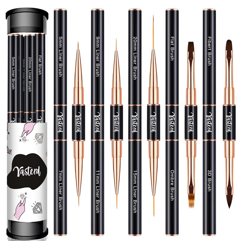 - Double-head Design - There are 10 different brush heads, including 6 liner& detail brushes, 1 flat brush, 1 ombre brush, 1 Filbert brush, and 1 3D brush, convenient for you to draw different patterns. Draw exquisite 3D painted patterns, flowers, swirls, plaid, fine details& pattern, etc. Perfect to create your own DIY nail style as you like.
