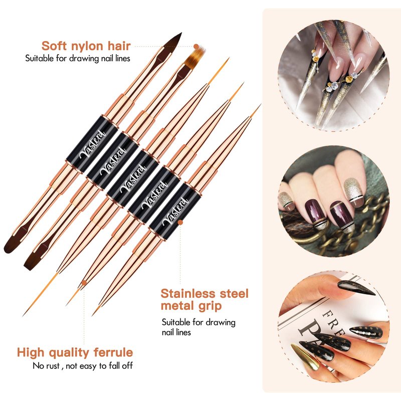 Nail Art Brushes Set - Professional 5pcs Double-Ended Acrylic Nail Art Brushes Liner Detail Thin Brushes for Drawing Design Brushes Gel Builder Brushes 3D Nail Art Tools (Black)