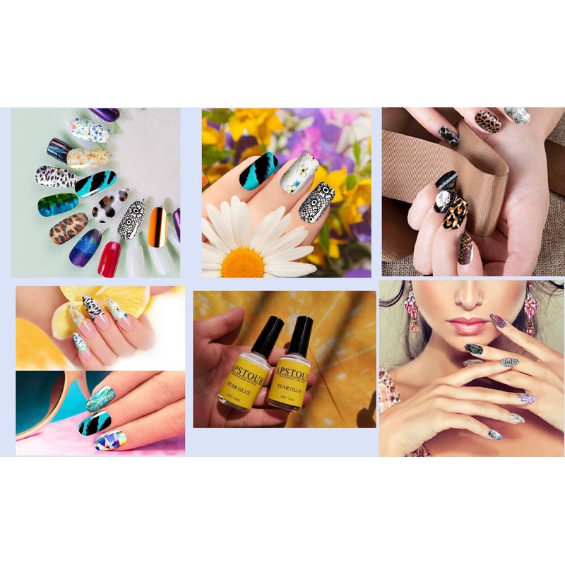- ★High-Quality Material Gel Nail Glue: Apstour transfer nail foil glue -- nail foil glue are made from natural resin which is a kind of green-friendly environmental material, longer-lasting comparing with normal stickers with top coats. Avoid contact with eyes, mouth, and skin. Stop using the product if redness and itching develop.