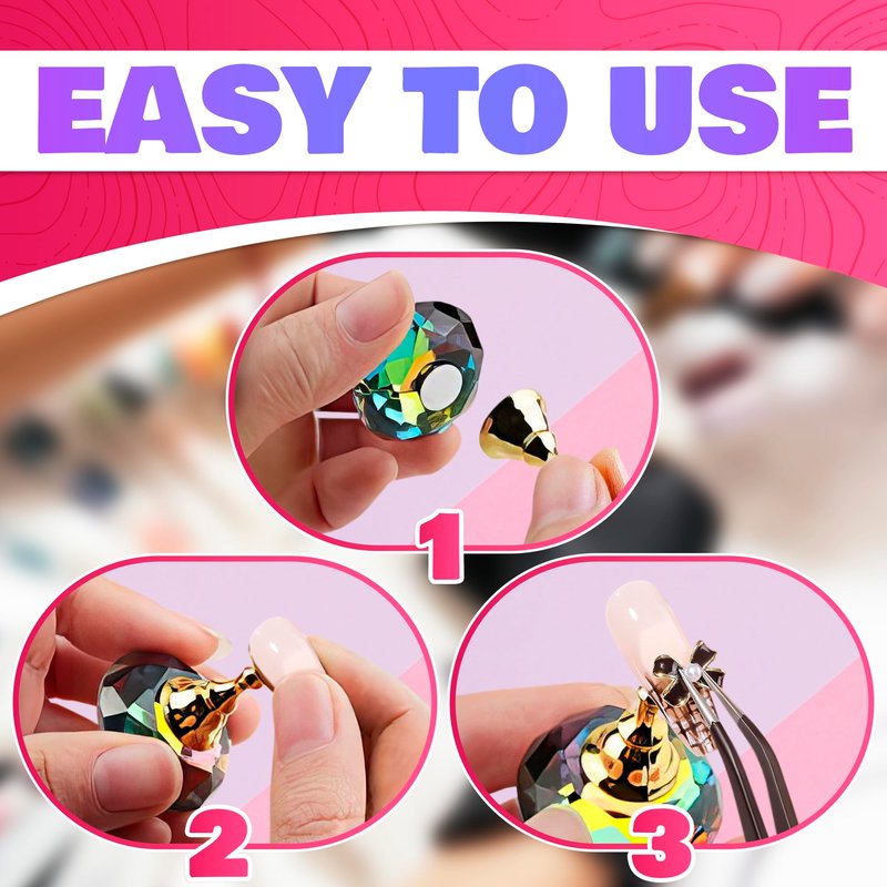 5Pcs Practice Nail Stand with 1 Glass Crystal Base Nail Art Stand: Our nail polish display stand is made of high grade material which is durable and practical. The nail press on stand fit in your hand comfortably as you work on your acrylic nail art. It can not only be used as a nail art practice but also can be used to nail art display stand. The magnetic bottom of the tip holder allows it to small stands upright. The magnets are incredibly adaptable easy to install and uninstall. Exquisite and long-lasting glass crystal and alloy material both are great for use at a salon and for do-it-yourself home projects. Specification: Material: Glass Crystal + Alloy Color: Multicolor Package Include: 1 x Special glass Crystal Base 5 x Alloy armor Great Design: The acrylic nail holder can be used as a practice nail stand as well as a display for nail art press on. Each nail tip stand has a magnetic bottom that keeps it linked to the magnetic crystal diamond ""upright."" Our acrylic nail stand is both simple and attractive, as well as long-lasting. Convenient to Use: Our magnetic nail practice display stands are pleasant to handle and provide a relaxing nail art crafting experience. The nail tip holder can be used as a practice stand for nails to improve your nail art skills, and a beautiful false nail display stand for a salon Wide Application: These magnetic nail polish base and coat stands are good for nail art practicing and displaying, nice choices for nail art learning beginner, nail art favor, salon artist, personal usage and more. These nail tip stand set are perfect gift for nail art lover. A gift to you friend, girlfriend and family.