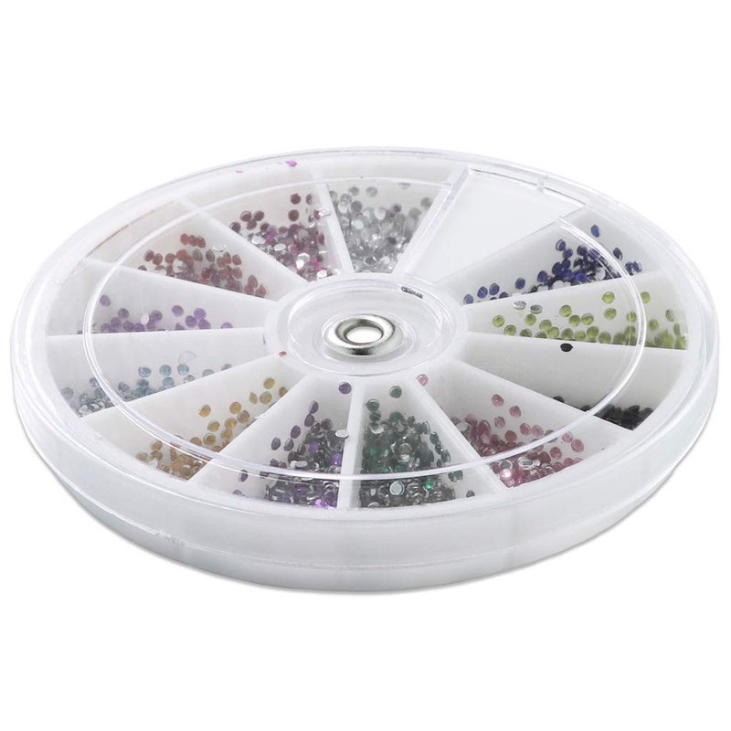 - [STYLE] Style #1 (Small Assorted Colors) - Rhinestone Wheel Style #1 consists of small round resin rhinestones in 12 different colors. Colors include: Black, Clear/Silver, Red, Yellow, Green, Light Green, Light Blue, Blue, Purple, Lavender, Pink, and Fuchsia.