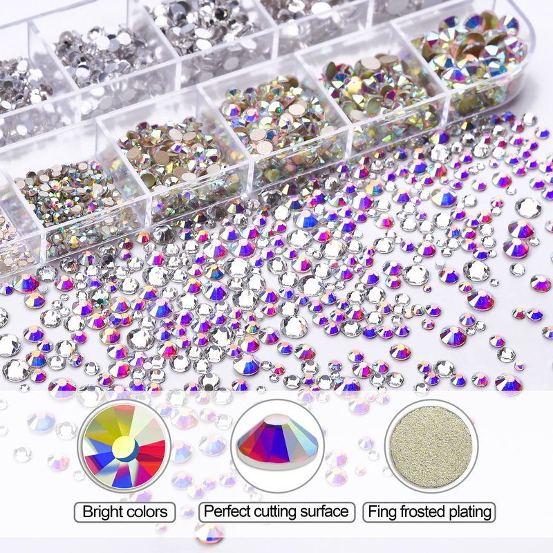 - 【Various Choice】:Our nail jewels kit adopts the popular iridescent crystal ab color and clear gems stones. diverse styles and sizes 3d nail rhinestones supply for you, make your nails more dazzling and charming.