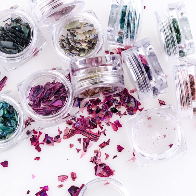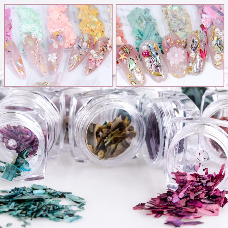 Nail Art Shell Slices, 12 Boxes Colorful Irregular 3D Nail Abalone Slices Nail Art Shell Stones Nail Sequins Decoration