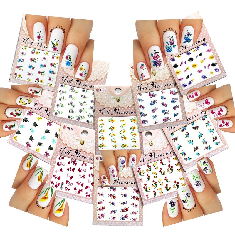 - ELEGANT NAIL TATTOOS - 10 sheets with cute designs in variety of colors, shapes and sizes