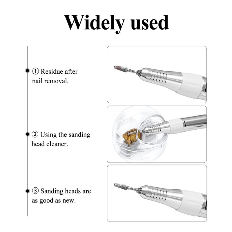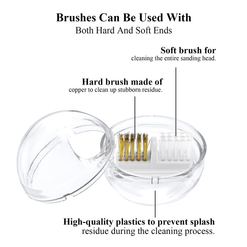 - Two Brush Heads: The drill cleaning brush includes two types of brushes: a wire brush for removing hard-to-clean dirt and a nylon brush for meeting daily cleaning needs of nail drills.