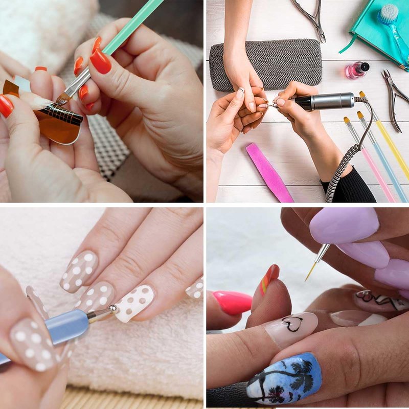 - 【Widely Used】These very practical gel nail brushes can not only be used for professional nail diy design and cleaning the Stratum corneum polished by gel, but also be used for coloring crafts or making an acrylic painting. There are various types of nail pens for different purposes, with good performance, making the gel nail brushes the perfect tool for painting nail
