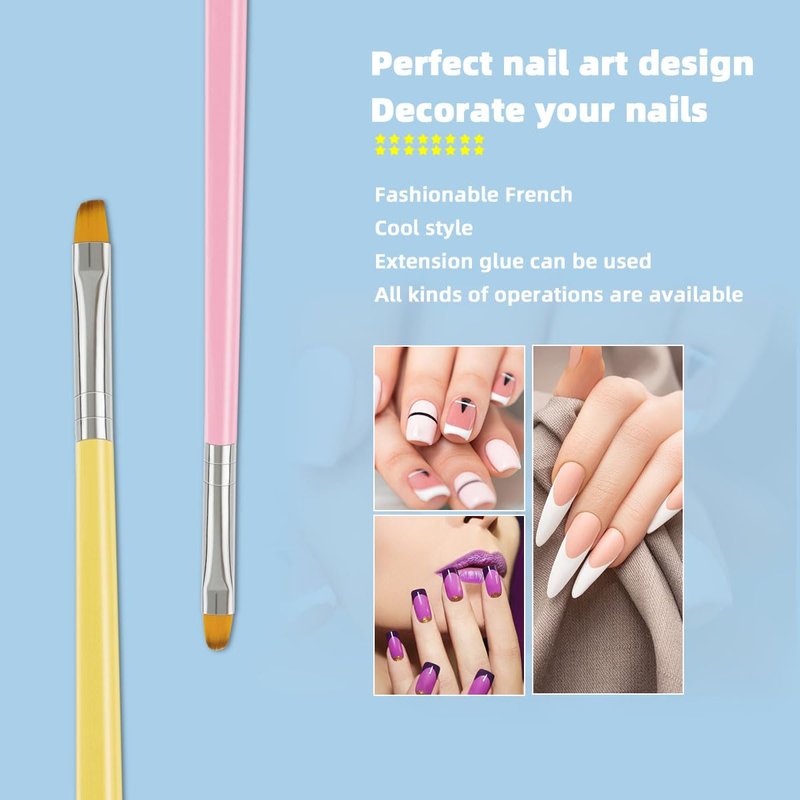 Name:Polygel Nail Brush Set Color:Pink+green+yellow+Baby blue+blue+light brown Material:Wood+aluminum tube+nylon wool Features:【High Quality Materials】This gel polish brush set is made of high-quality wood, aluminum tube, and nylon hair, which is sturdy and durable, well crafted, without shedding hair, and has cute and soft colors. This gel polish brush set comes in a variety of sizes, including different brushes and brush heads for design, and the gel polish brush set is perfect for beginners and professionals. 【Easy to Operate】Each nail brushes for gel nails included in this gel polish brush set is very easy to use, which is very suitable for the creative design of nails and cleaning of gel polished Stratum corneum. These nail brushes for gel nails are also easy to clean and reuse. These nail brushes for gel nails can smoothly brush nails into various beautiful shapes, making them the perfect gift for nail enthusiasts! 【Widely Used】These very practical gel nail brushes can not only be used for professional nail diy design and cleaning the Stratum corneum polished by gel, but also be used for coloring crafts or making an acrylic painting. There are various types of nail pens for different purposes, with good performance, making the gel nail brushes the perfect tool for painting nail! 【Set Includes】This gel brush set includes a round headed pen, carving pen, oblique headed pen, flat headed pen, a double headed point drill pen, and a double headed drawing pen, totaling 6 pens. Meeting all your size and shape needs, the gel brush set is the best gift for birthday parties, Christmas, Mother's Day, and Thanksgiving Day! 【Buy with Confidence】Yuntop is committed to providing customers with quality products and caring services. If you encounter problems such as product damage, please tell us by email in time instead of giving a bad comment immediately. If you are not satisfied with our products, we promise 100% refund. Customers'