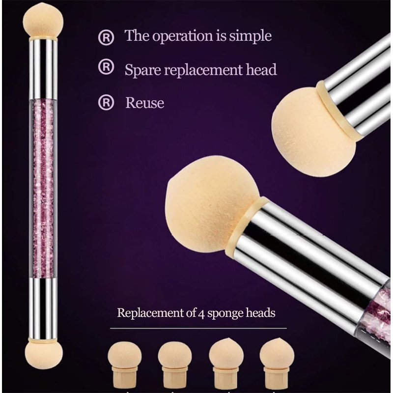 - Nail Brush Sponge Nail Brush Picking Dotting Gradient Pen Brush Nail Art Tools with 4 Replacement Heads