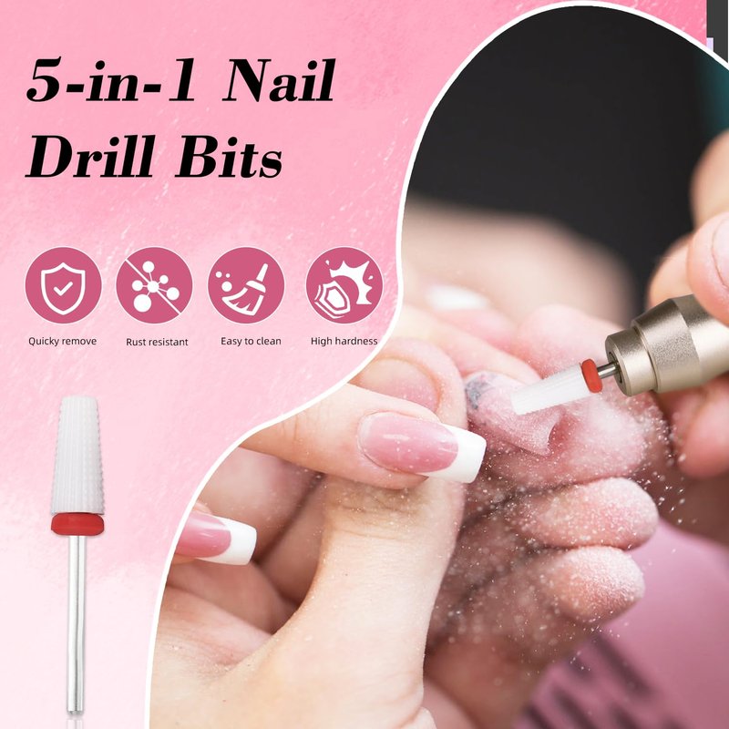 【5 In 1 Nail Drill Bit】Multi-functional design, the surface roughness of the drill bit changes from fine to thick from top to bottom, one size nail drill bit can complete the function of multiple sizes, can quickly remove acrylic or hard gel for removing cuticle, cleaning, shaping, cutting, smoothing and removing,meet your various needs. 【Easy to Clean and Safe for Nails】Our drill bits is corrosion resistant, as well as no clogging for nails. little friction and heat. Designed with a dust-proof ring for preventing dust into nail drill handpiece, protecting the machine. Fits most nail drill machines that use 3/32" drill nail bits.easy to be cleaned with water after each use,It is so important to keep your and your client’s nails healthy. 【Premium Tungsten Carbide Bit】Nail drill bits is made of high quality tungsten carbide, high hardness remover, no mess, durable for long time use. Excellent smoothing cutting performance for professional manicure nail art salon or DIY Home. 【Small & Portable Acrylic Nail Drill Bits】The cuticle drill bit for nails is dustproof, portable and lightweight, easy to store & carry, Suitable for Both Left and Right-Handed.for both personal and home use anytime and anywhere.Perfect gift for Mother's Day.Best gift for beginners to start their journey to the nail art world. 【Worry-free after-sales servicel】Long-term Used and Quality Warranty - We are committed to delivering the highest quality products and guarantee a fast replacement or refund service if you have any problem with our products.