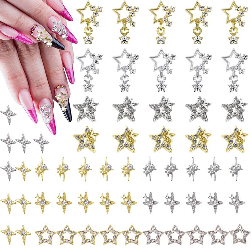 - STAR NAIL CHARMS: You will receive 60pcs star nail charms and there are 6 different styles of stars with two colors-gold and silver, you can choose different shapes of stars to decorate your nails!