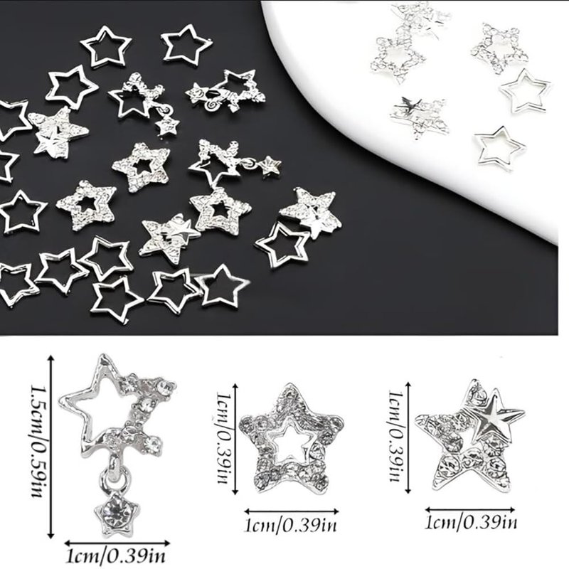 - 【Easy to Use】: Suitable for professionals or beginners. Star nail charms perfect for natural or artificial nails. And can be combined with all UV gel nail polish, DIP powder, and all nail powder.