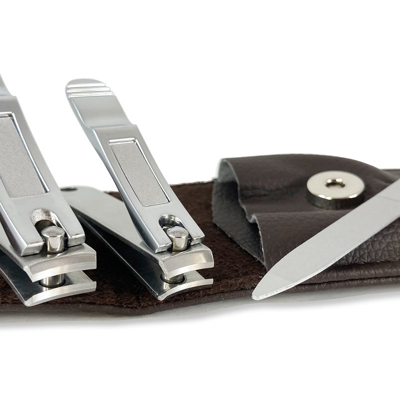 Nail Clippers by Zizzili Basics - 3 Piece Nail Clipper Set - Stainless Steel Fingernail & Toenail Clippers with Nail File and Brown Travel Case - Best Nail Care for Men, Women, Manicure & Pedicure