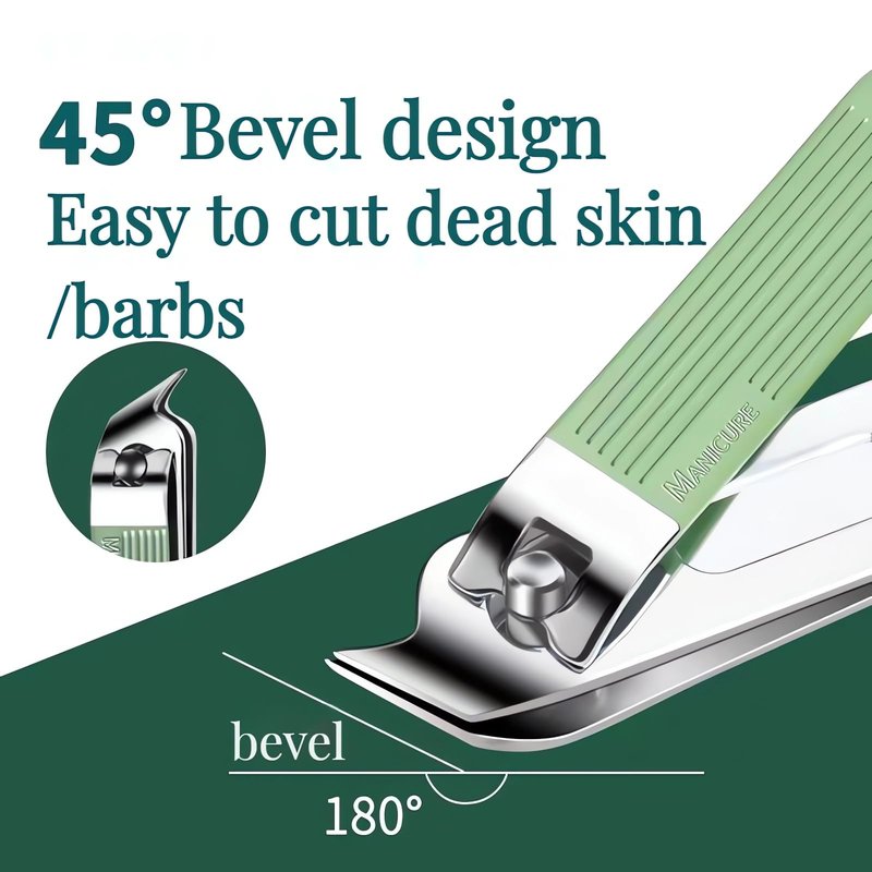 - The nail clipper set includes nail clippers, toenail clippers and angled nail clippers and an ear scoop. Featuring an ergonomic non-slip lever design for cutting and a built-in metal nail file, perfect for rough edges after trimming, the perfect solution to your manicure needs in any scenario. Separate dedicated tools for fingers and toes to avoid the risk of bacteria transmission and infection