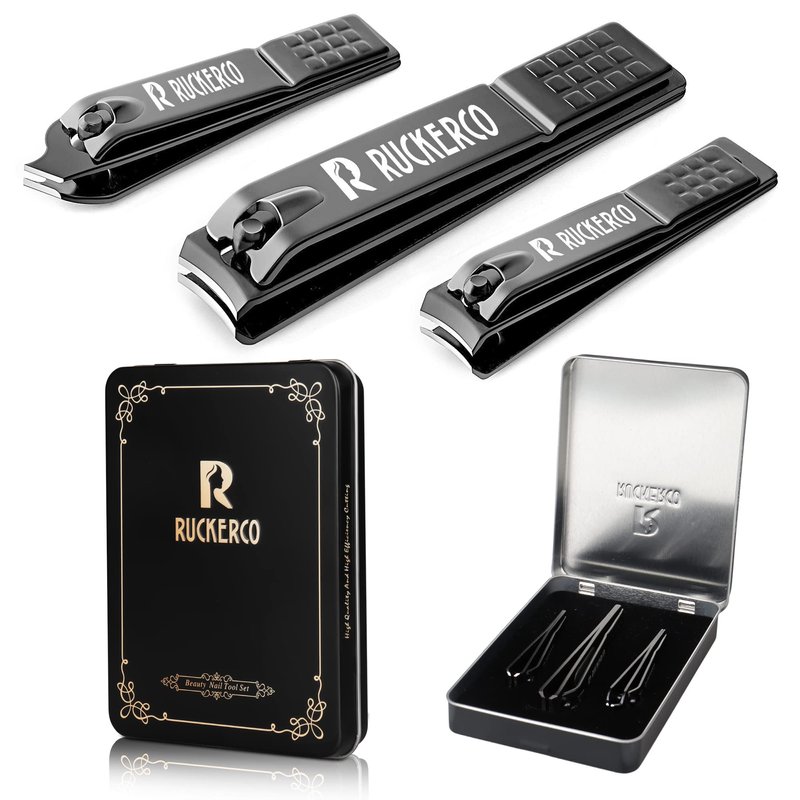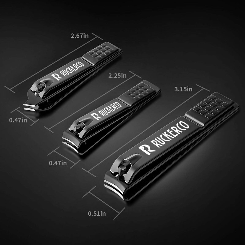 - Professional nail clippers set: R RUCKERCO nail clipper set contains nail clippers, toe nail clipper & oblique nail clippers.With non-slip ergonomic lever design for cutting, with embedded metal nail file, it is very suitable for smooth rough edges after trimming, which perfectly solves your manicure needs in any scene. Finger and toe independent special tools to avoid the spread of bacteria and the risk of infection