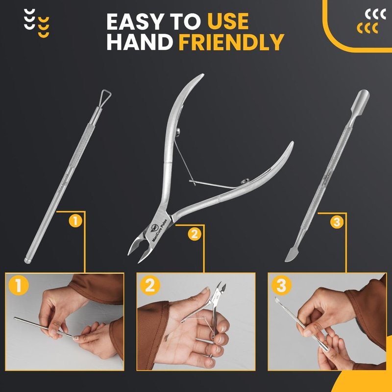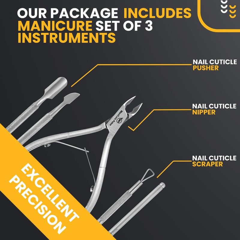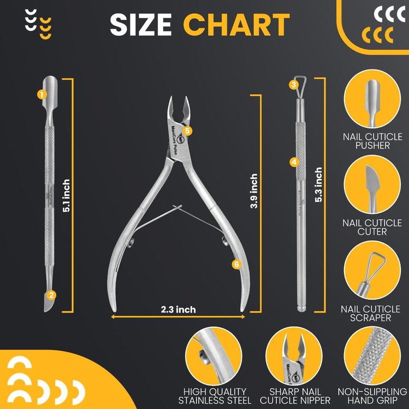 - Professional-Quality Nail Care Set - Our Nail Cuticle Trimmer Set is an extensive set built to suit all of your nail care requirements. It features a precision-cut cuticle trimmer, a dual-ended pusher, and a scraper, allowing you to maintain your cuticles precisely and effectively.