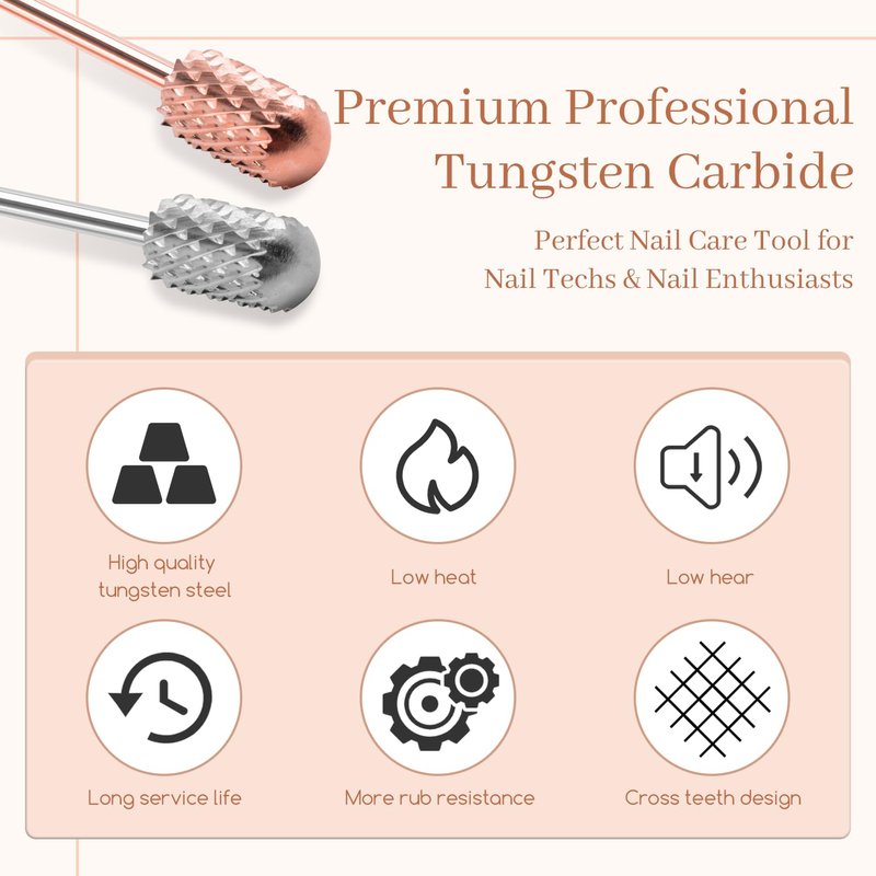 - ✅PROFESSIONAL CARBIDE NAIL DRILL BITS – Made of premium quality YG6X tungsten carbide materials. Unlike other metals, a tungsten carbide drill bit will corrosion, low vibration, and heat dissipation, providing a long use.