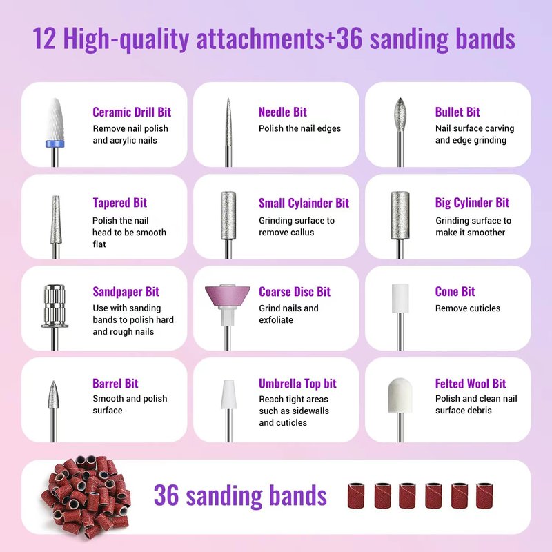 Denabuty 12 in 1 Cordless Rechargeable Electric Nail Drill-Bring Your Beauty Salon Home!