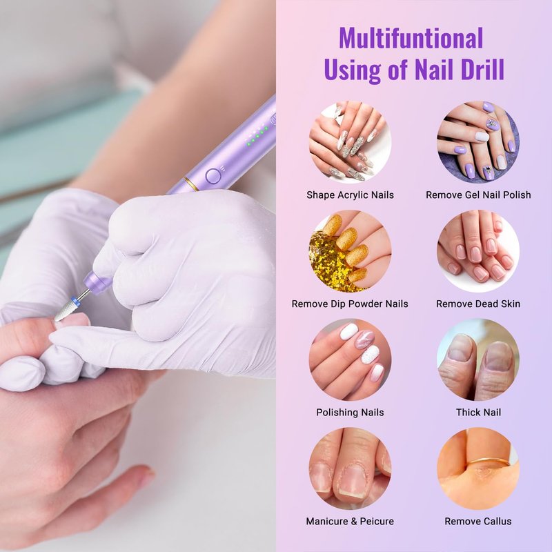 - 【Electric Nail Drill Cordless】Denabuty electric nail files can be used for manicure, pedicure, polishing, shaping, grinding cuticles, removing acrylic/gel nails, or for nail beauty. Perfect for both natural and acrylic nails, even for pet nail polishing.