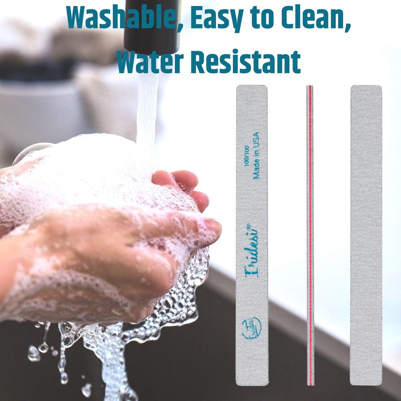 - WASHABLE, EASY TO CLEAN, WATER RESISTANT. We recommend using isopropyl alcohol to clean your nail file supplies. A couple sprays will do the trick. You may also brush the file lightly with a manicure brush to clean out any stuck on material. We also recommend not to soak the file as it may damage that paper and adhesive elements.