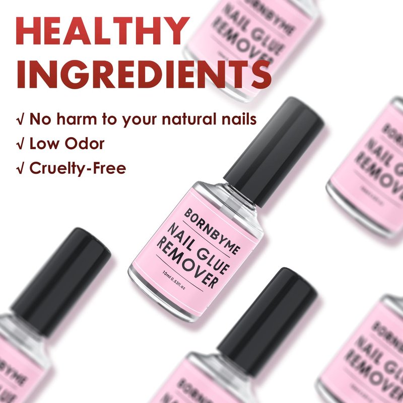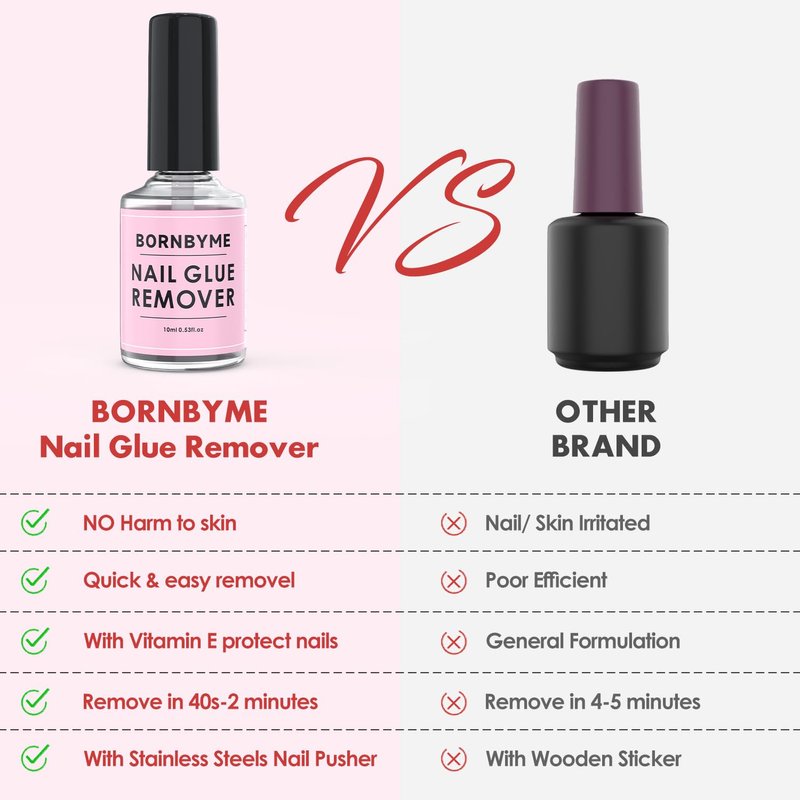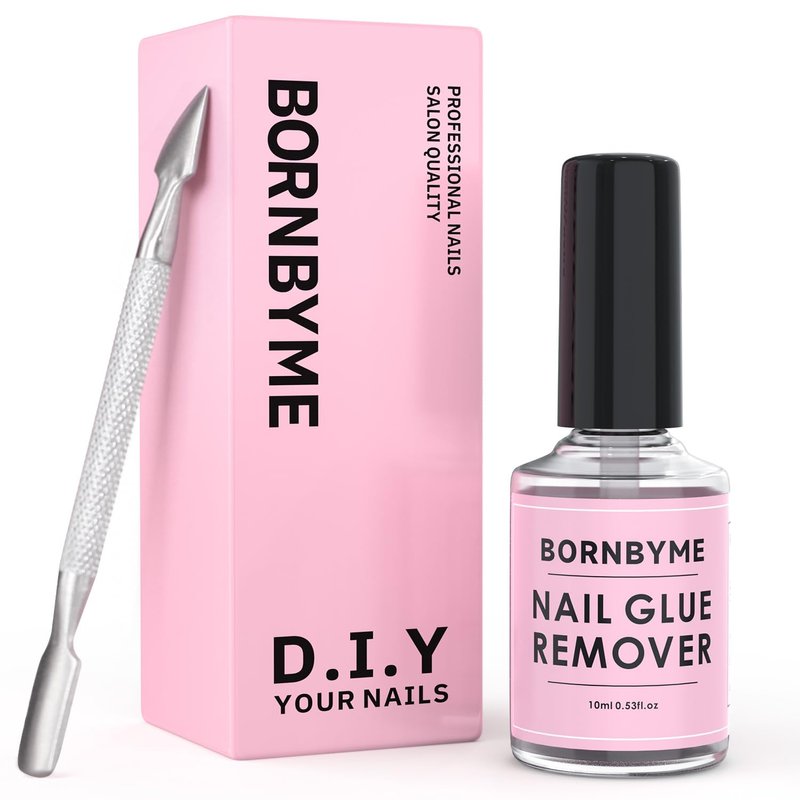 - Easy Apply Quick Remove:BORNBYME 15ML nail glue remover nail debonder with stainless steels nail pusher for you easy & convenient to remove the glue on nails or press on nails 30-45 seconds