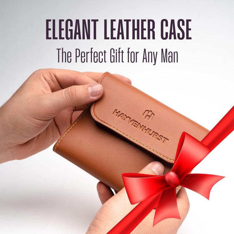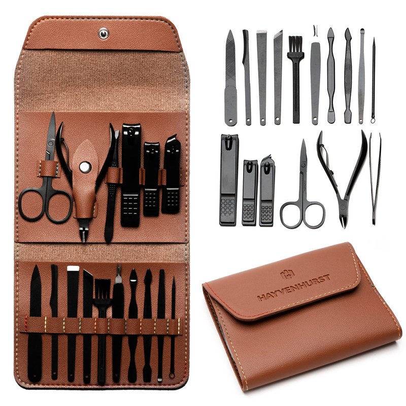 Nail Kit - Nail Clipper Set - Manicure Set -16 Stainless Steel Pieces Manicure Kit For Men’s - Pedicure Kit For Men - Mens Grooming Kit With Brown Leather portable Case by Hayvenhurst
