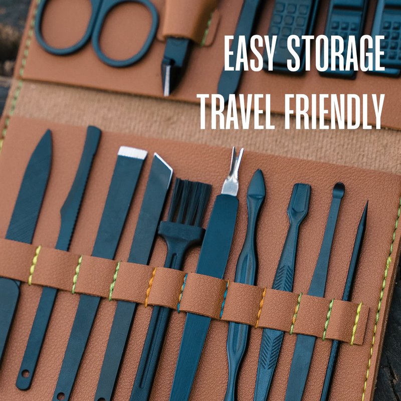 - POCKET FRIENDLY- This nail kit is L13.8cm and W10.8cm. These tools can easily be placed anywhere in your luggage and you can smoothly carry them around.