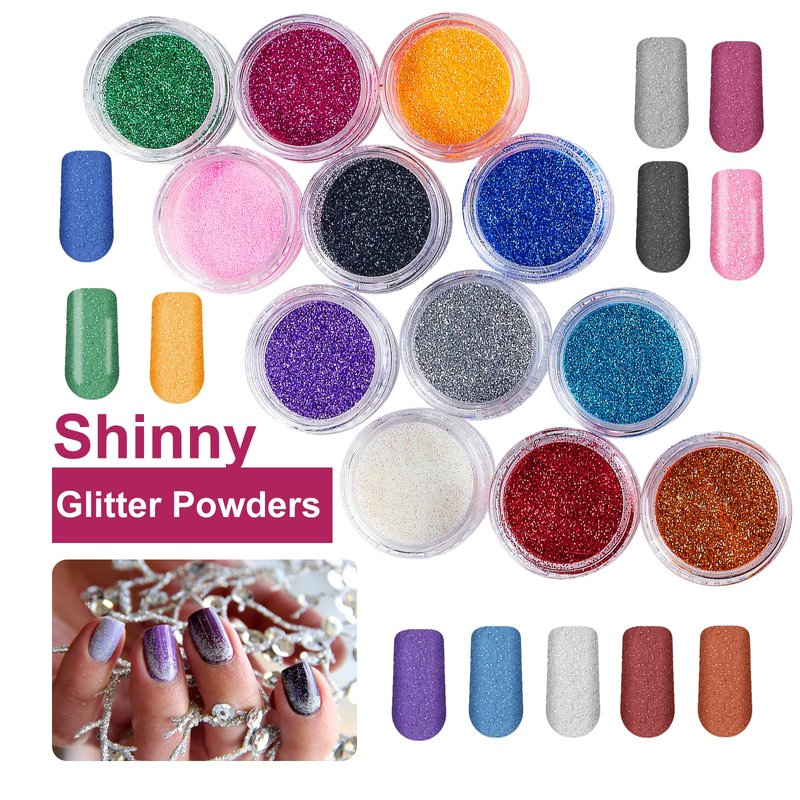 - Glitter Acrylic Powder Kit: 12 Glitter acrylic powder creating beautiful nail for long lasting sparkle nail tips. Two acrylic nail tip used as nail acrylic kit for nail art starter to DIY nail art design.