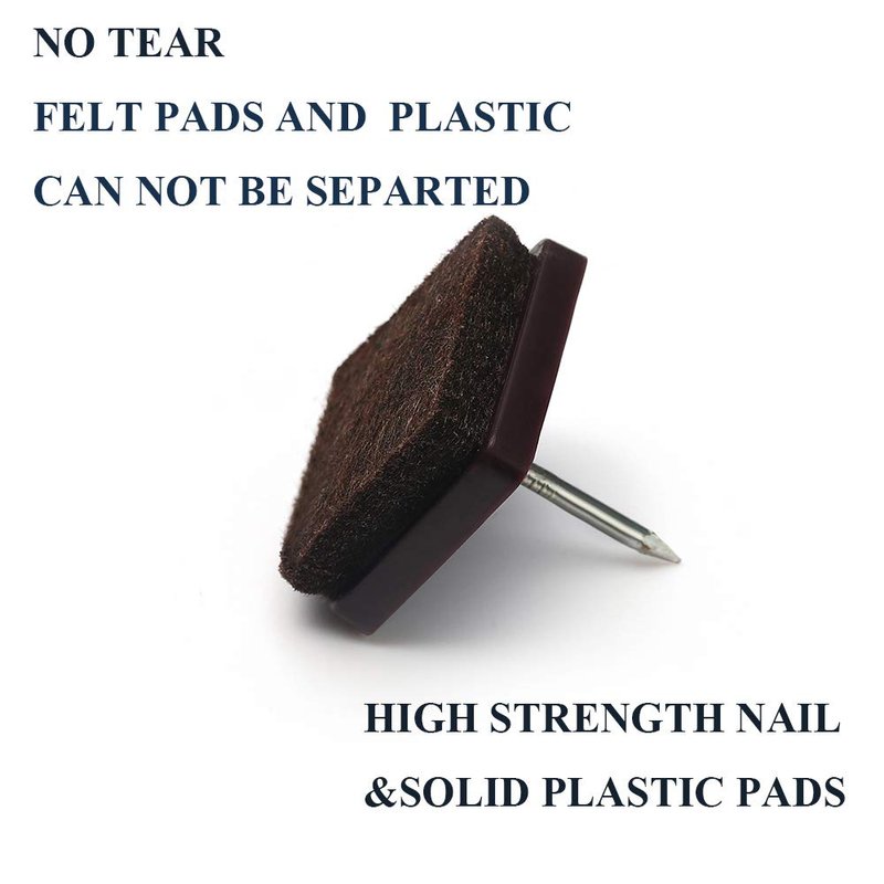 - High quality carbon steel nail with high density chair felt pads, color: Brown. 1*1-1/2" furniture pads for hardwood floors. Each pack include 24 pack and LASTING PROTECTION, lasts far longer than stick-on pads.