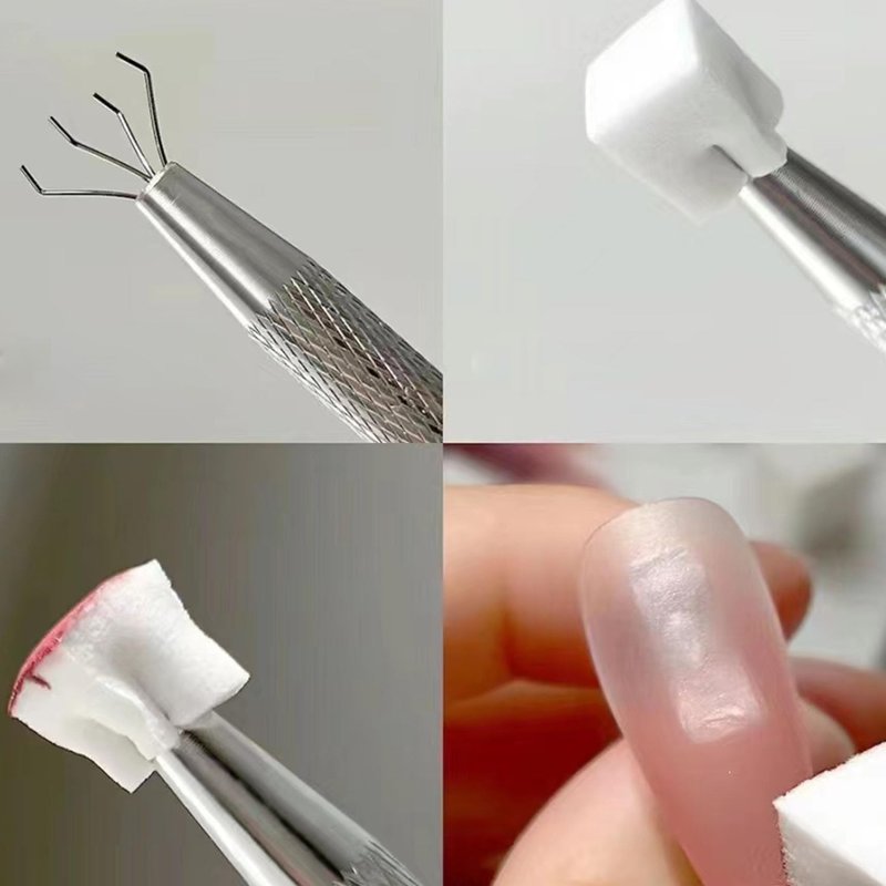 - nail art sponge---It is much more convenient to just be able to trash the sponge. This is a tool that you press the plunger in. Prongs come out and you are able to grasp the sponge. It comes with extra sponges.
